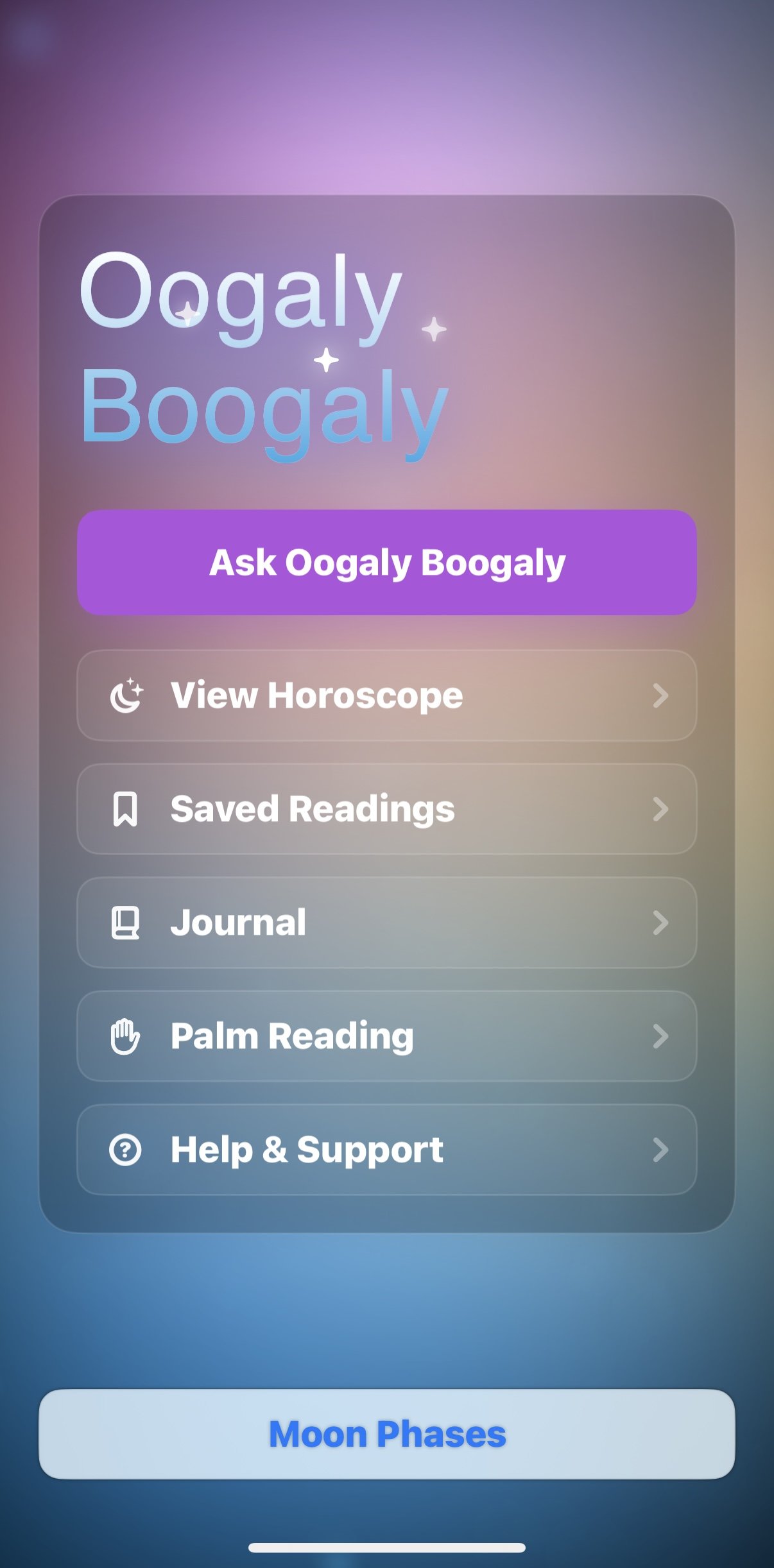 Download Oogaly Boogaly on your iPhone, choose your language, ask your first question, and see what the stars (and your palm) have to say.