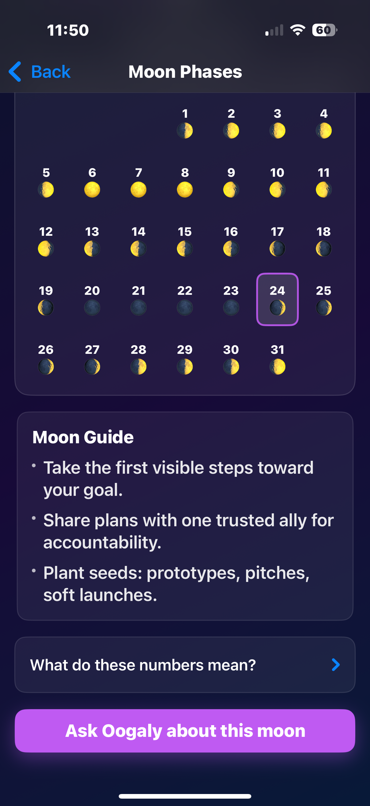 Then we add the part humans have always loved: the meaning layer. Oogaly Boogaly blends popular modern moon lore with long-running folk interpretations so you get both the what and the so what—the kind of insights moon-followers use to plan, reset, launch, refine, and finish. And here’s the power move: when a phase hits with a message like “refine and polish what you started,” you can tap once and send that insight straight into iPhone Reminders. Tuesday presentation? Boom—set the alert and your phone becomes pocket-sized lunar mission control.